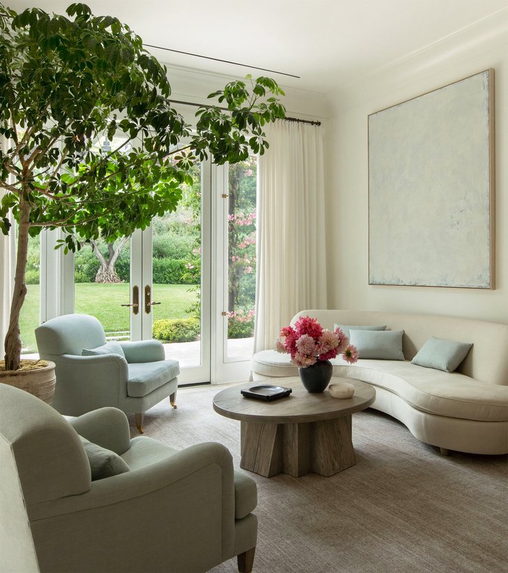 А вот в интерьере звезда предпочитает сдержанность: плавные формы и мягкие тона.