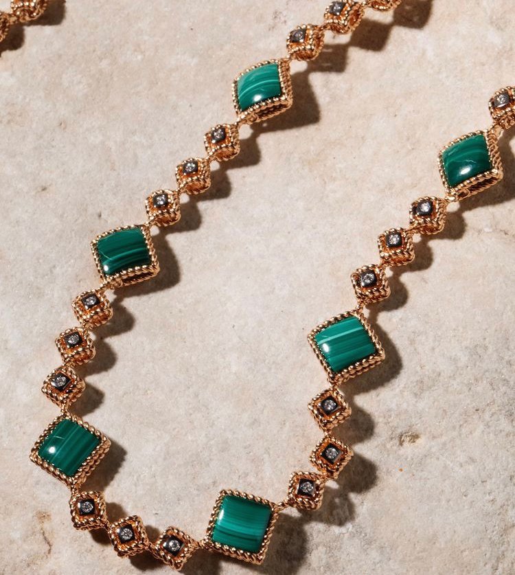 У Palazzo Ducale готический характер, но благодаря «ажурным» элементам здание производит впечатление невесомого. Могут похвастать этим и новинки Roberto Coin. Кольца с перламутром и жадеитом, серьги с бриллиантами и колье с малахитом выглядят «воздушными», несмотря на серьезный вес золота и камней.
