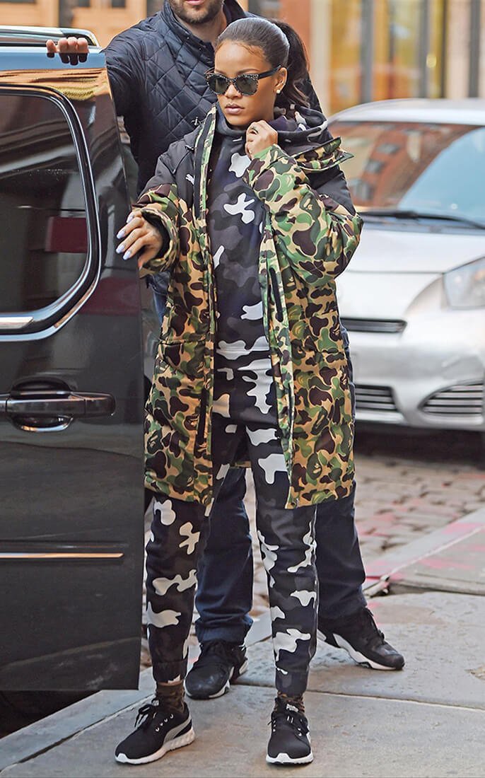 Узнаваемый камуфляжный принт полюбился не только парням, но и девушкам: Бейонсе, Рианна, Белла Хадид и Рита Ора также были замечены в худи, парках и брюках японского бренда.