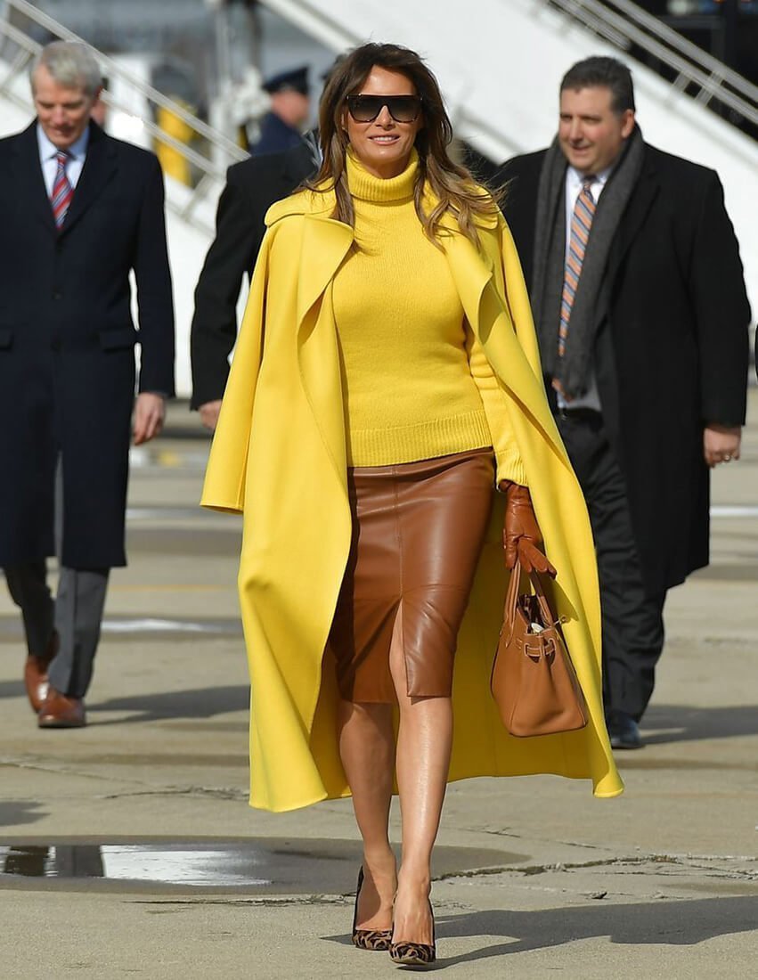 Закон модного равновесия гласит: скромность кроя компенсирует насыщенный цвет. Мелании Трамп особенно нравятся алый, желтый и розовый.