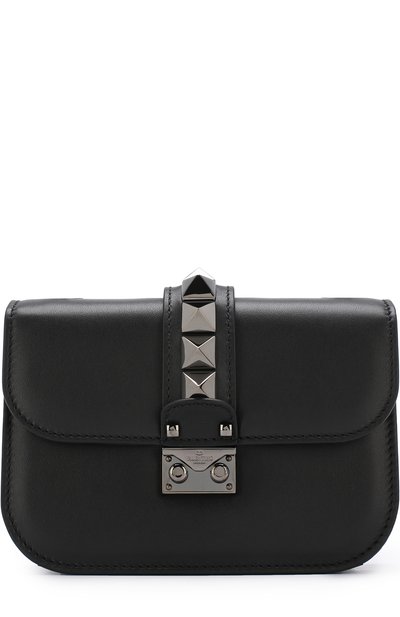 Черная сумка Glam Lock Noir выполнена из гладкой матовой кожи. Широк ий клапан с кнопочным замком украшен крупными шипами-пирамидами, характерными для аксессуаров бренда, основанного Валентино Гаравани. Модель дополнена плечевым ремнем-цепочкой. Внутрь поместятся телефон, кошелек и паспорт.