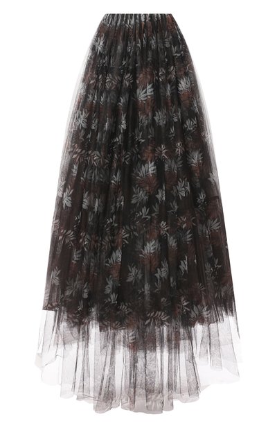 Брунелло Кучинелли включил в весенне-летнюю коллекцию пышную макси-юбку. Сделать силуэт объемным и при этом легким получилось благодаря нескольким слоям прозрачного тюля с цветами шоколадного и графитового оттенков, покрывающим плотную полушелковую подкладку. Модель дополнена мягким и эластичным потайным поясом.