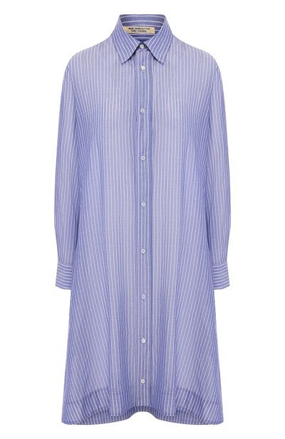 В коллекции сезона весна-лето рубашку не узнать. За счет длины и расклешенного низа она больше напоминает платье. От классического варианта остались рукава, отложной воротник и материал. При создании модели Йоджи Ямамото выбрал плотную, но при этом легкую смесовую ткань. Ее неоднородный синий цвет стал хорошим фоном для белого полосатого мотива.