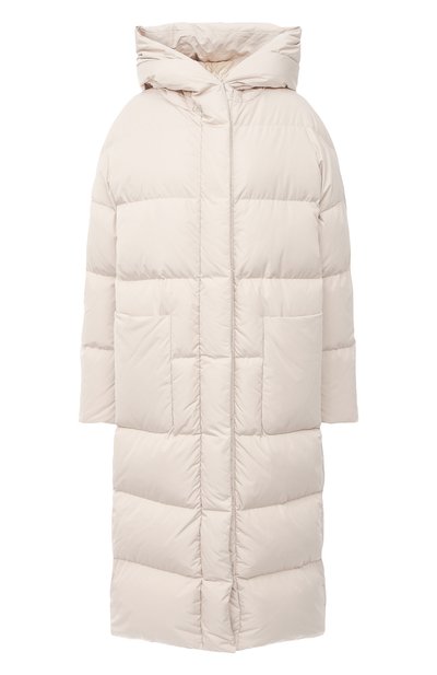 Кремовый пуховик из коллекции сезона осень-зима ставит знак равенства между красотой и комфортом. Стеганая модель с двумя накладными карманами получилась особенно легкой за счет гладкого непромокаемого полиэстера и отборного утиного пуха внутри. Дополнительно от ветра и влаги защищают объемный капюшон и планка с кнопками, прикрывающая молнию.