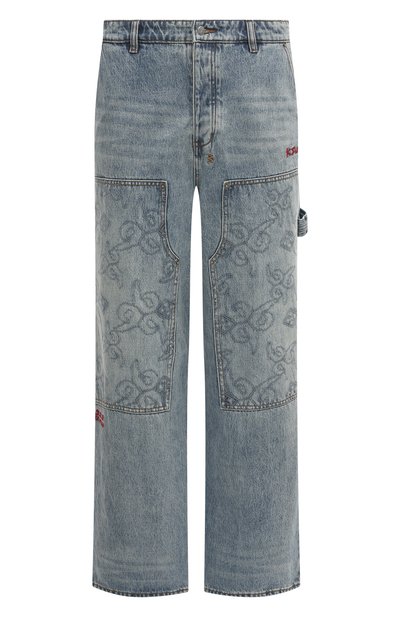 Голубые джинсы из плотного хлопка выглядят максимально расслабленно за счет выбеленного оттенка и свободного кроя. Модель из лимитированной капсулы Ksubi x Juice WRLD дополнили шестью карманами, два из которых – большие карго. Именно их выделили стеганым узором, а рядом расположили плотницкую петлю. Изделие украсили логотипом T-Box Ksubi x JuiceWrld и вышивкой 4x4.