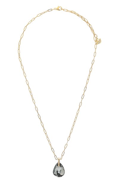 Мастера марки выполнили тонкую цепочку с крупными звеньями из прочного сплава с золотым гальваническим покрытием. Модель украсили каплевидной подвеской из серого кристалла, хаотично расположенные грани которого эффектно преломляют лучи света. Такое украшение одинаково гармонично дополнит и по вседневный образ, и декольте нарядного платья.