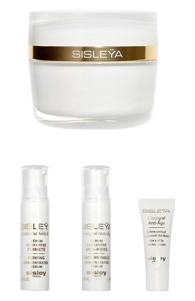 Старение кожи вызывают три группы факторов: наследственные, связанные с воздействием агрессивных внешних факторов и с нездоровым образом жизни. И Sisleya L'integral Anti-Age — самая престижная линия Sisley — обещает противостоять им всем. В наборе четыре средства: крем для лица (50 мл), концентрированная лифтинг-сыворотка (4 мл), сыворотка против морщин (4 мл) и крем для контура глаз и губ (2 мл).