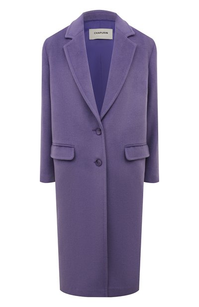 Игорь Чапурин выбрал для пошива однобортного пальто с акцентированной линией плеч мягкую фактурную шерсть спокойного сиреневого оттенка. В состав материала добавили шелковистые нити вискозы, поэтому он сохраняет комфортную для тела температуру и не пилингуется со временем.