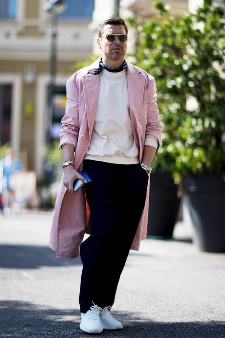 Серьезно рассуждать на тему брутальности или женственности в контексте моды в 2019 году уже странно. Поэтому просто еще раз напомним: розовый цвет в мужских образах — это классно, очень модно и свежо. Согласны с этим и дизайнеры, и гуру street style. Поэтому добавить в гардероб все оттенки pink — ваша задача номер один.