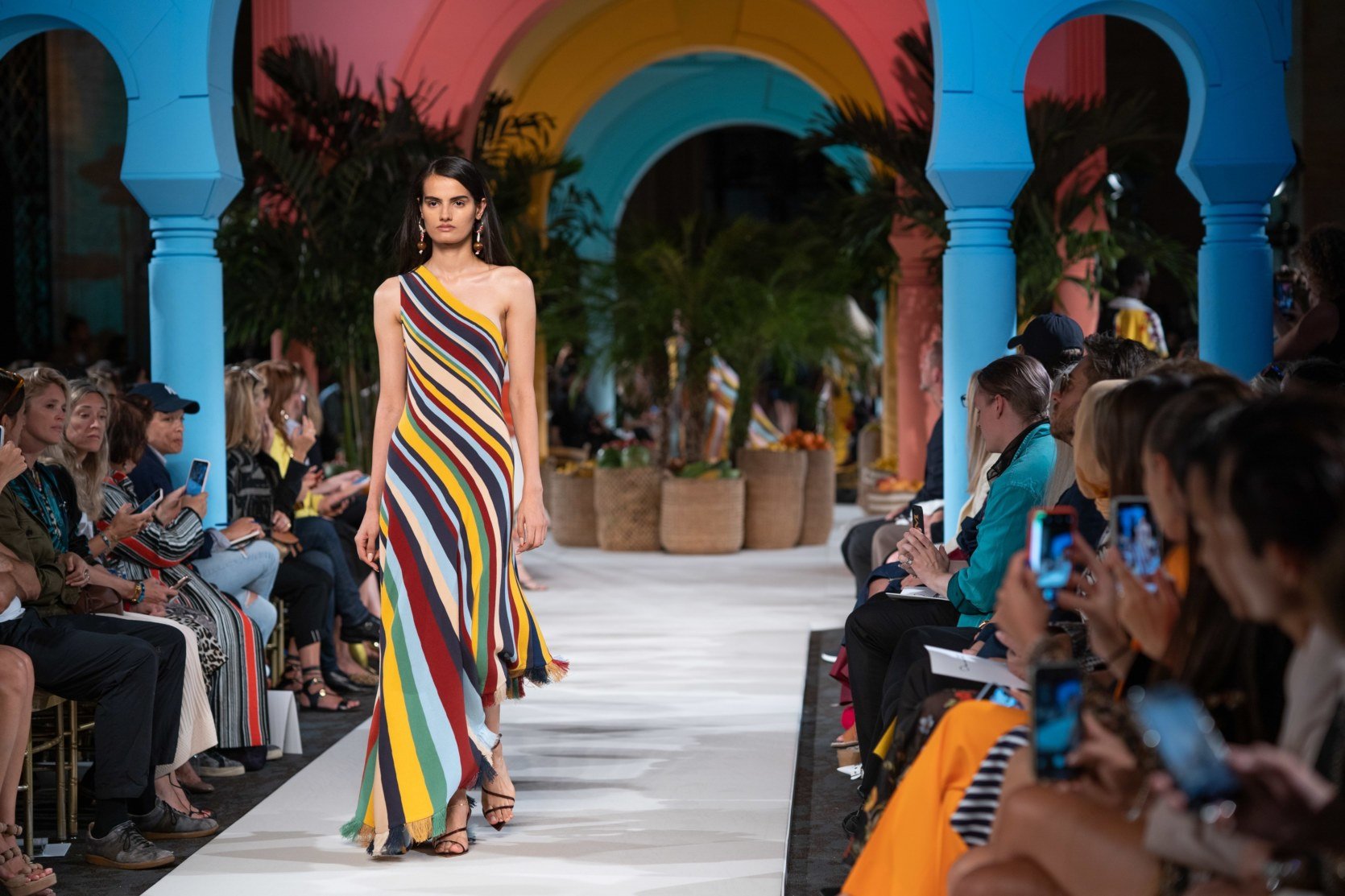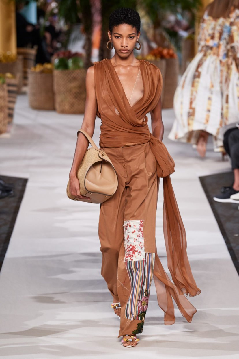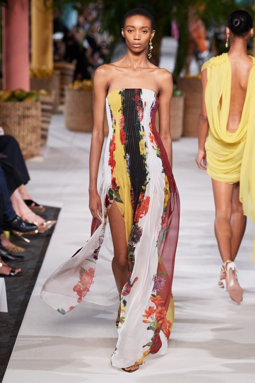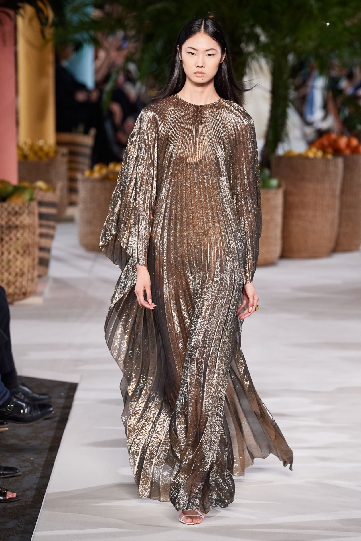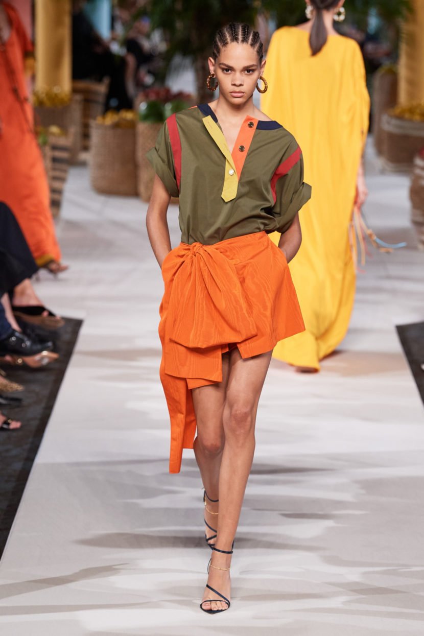 Теплые солнечные оттенки, пестрые цветочные и геометрические орнаменты, легкие ткани и расслабленные, но при этом, как всегда, очень женственные силуэты — Лаура Ким и Фернандо Гарсия обращаются к яркой культуре Доминиканской Республики — родины самого Оскара де ла Ренты. Блузы и объемные платья декорированы деревянными бусинами и бахромой, а некоторые модели украшены очень красивыми деталями из рафии. И какой же Oscar de la Renta без вечерних нарядов? В этот раз их тоже было более чем достаточно: каскадный шифон, струящиеся металлизированные ткани, огромные банты и широкие юбки — звездные стилисты уже наверняка составляют образы для будущих красных дорожек.
