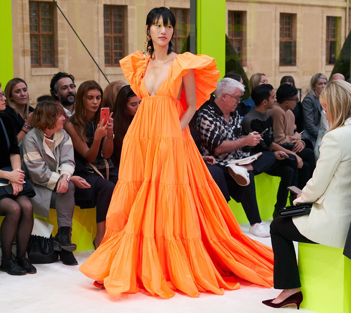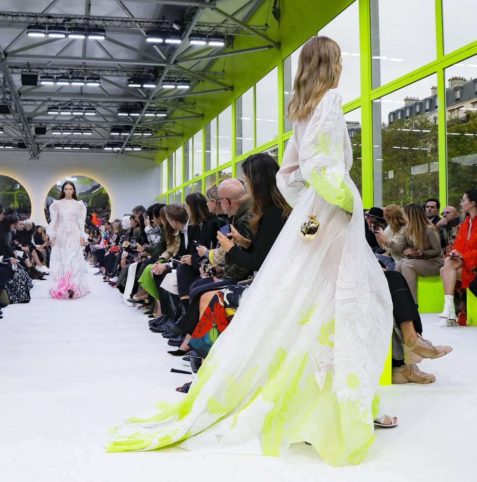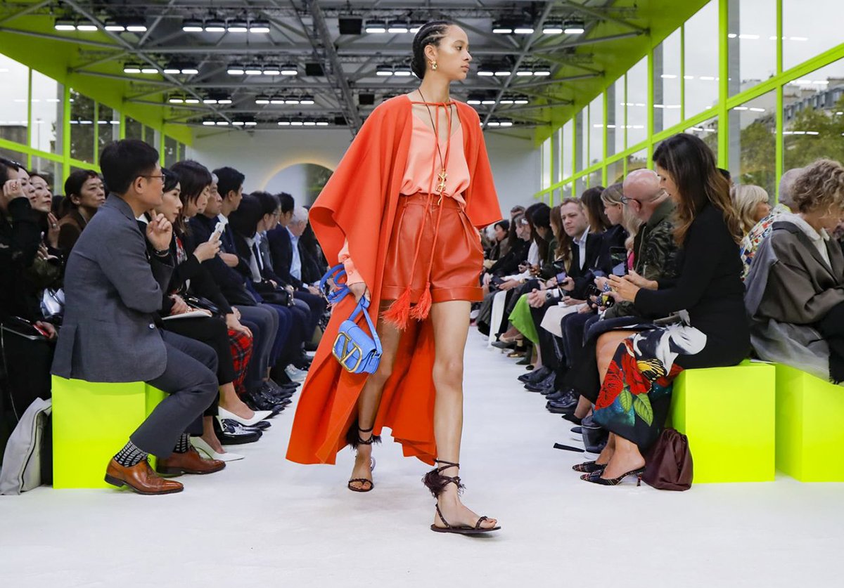 Что уж говорить о таланте Пиччоли отчаянно смело сочетать привычные, казалось бы, весенние краски. Кипенно-белые платья разбавляются неоновыми оттенками на подолах, к оранжевому комплекту идут синие аксессуары, а алый выступает дуэтом с фуксией.