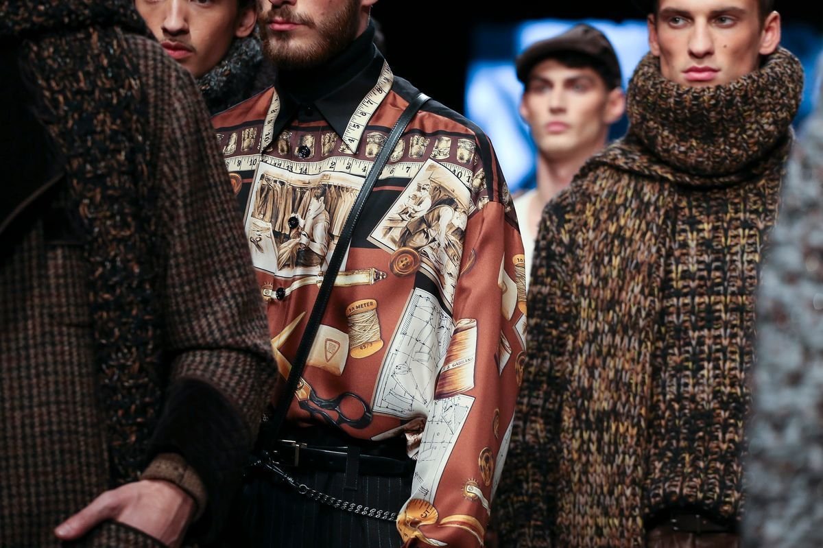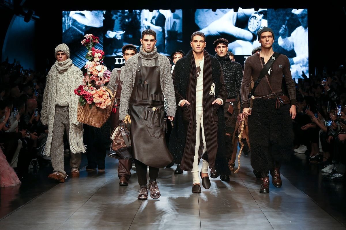 Доменико Дольче и Стефано Габбана сконцентрировались на ремесленных традициях Италии. Отсюда рубашки с броскими принтами, пальто-халаты, идеальные кожаные куртки и свитеры с надписями Craftsmanship («Мастерство»), Handmade и Fatto A Mano («Ручная работа»). Разумеется, выглядит все дорого и очень красиво.