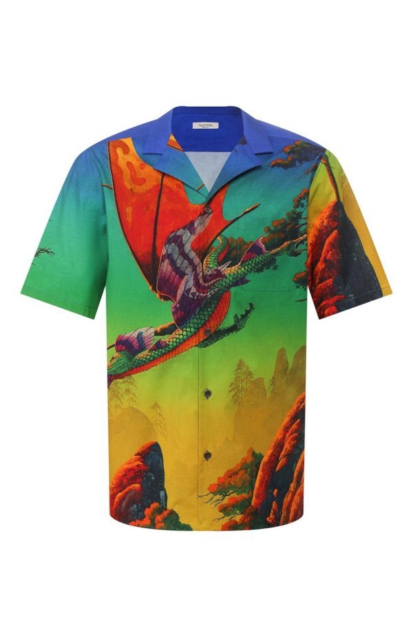 Мужскую коллекцию Valentino сезона весна-лето 2020 Пьерпаоло Пиччоли посвятил далеким путешествиям. Модникам, которых постоянно тянет навстречу приключениям, точно приглянутся футболки, рубашки, шорты и худи с фантазийными экзотическими принтами. Кстати, автором рисунков стал Роджер Дин — популярный современный художник и заядлый путешественник.