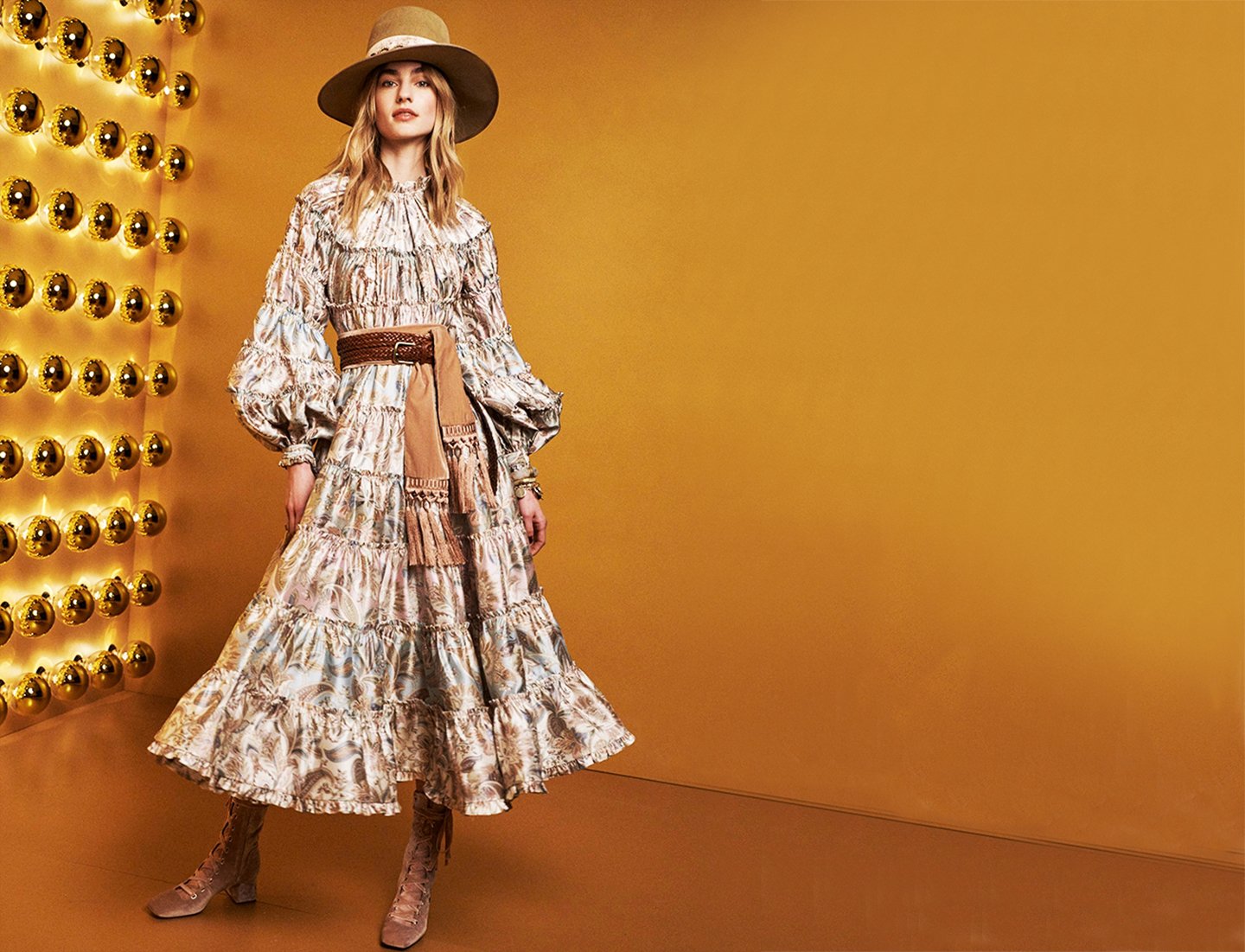 Дизайнер Ники Циммерманн назвала свою новую коллекцию Lady Beetle — «Божья коровка». По приданию, божья коровка приносит удачу, приземлившись вам на руку. Таким веселым суевериям и магии посвящена вся коллекция Zimmermann сезона осень-зима 2020/2021. Но гадать на таро не придется: богемные платья, жаккардовые костюмы, этнические пончо, шляпы-федоры и замшевые сапожки с завязками сделают вас самой модной девушкой в городе — это совершенно ясно.