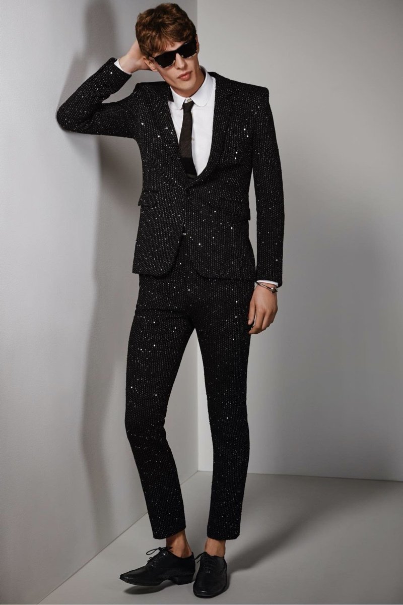 Сдержанную классику оставьте для деловых будней. А для случая, когда нужно выделиться, выбирайте пиджак, который привлечет к вам внимание. Вариантов множество: контрастные лацканы, жаккард с цветочным узором, золотые нашивки и даже пайетки. Только имейте в виду, что statement-вещь сама по себе является уверенной заявкой на модную победу. Поэтому с таким пиджаком должны выступать исключительно лаконичные модели брюк, рубашек и футболок.