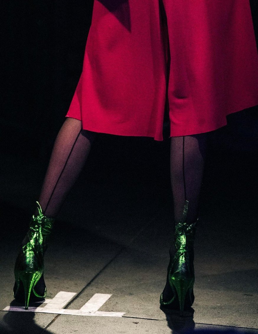 Например, главной звездой весенне-летней коллекции Tom Ford стали блестящие, как диско-шар, босоножки. Если вам кажется, что их фактура похожа на фольгу, то вы не ошибаетесь. Модель создана из ламинированной кожи угря, которую сшивают в полотна в Италии. А уже затем методом горячего пресса поверх наносят цветную фольгу.