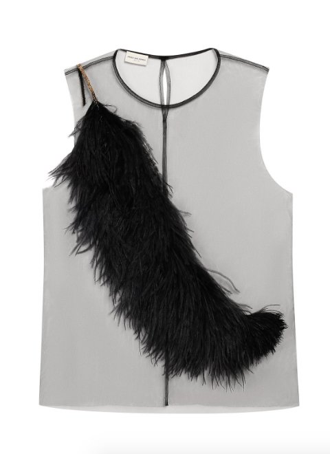 Одной из самых красивых тенденций этого сезона стали необычные топы — асимметричные, с оборками и перьями, декорированные серебряной бахромой и золотом. А в коллекции Cult Gaia даже появились топы, больше напоминающие платья. Только представьте, как эффектно они будут смотреться с джинсами, купальником или легкими брюками.