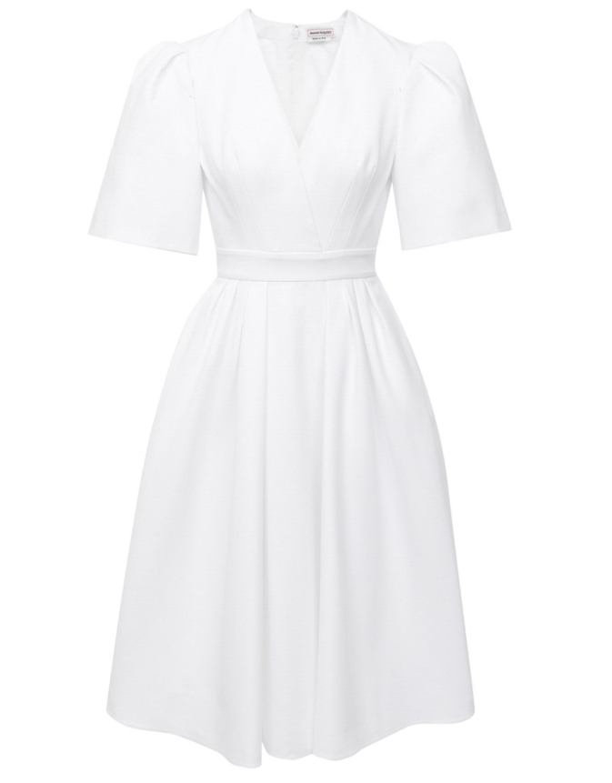 В таком наряде у вас получится женственный «воздушный» образ. Что, впрочем, не отменяет полной свободы выбора обуви: даже самое нежное белое платье можно носить не только с туфлями и босоножками, но и с кроссовками и даже с тяжелыми черными ботинками.