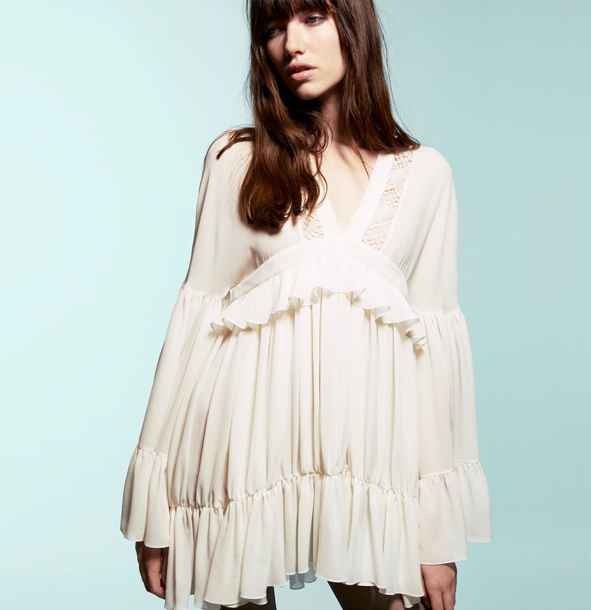 Легкое белое платье — беспроигрышная летняя классика. А в этом сезоне дизайнеры решили сделать ее еще и романтичной — украсив воланами, оборками и пышными рукавами.