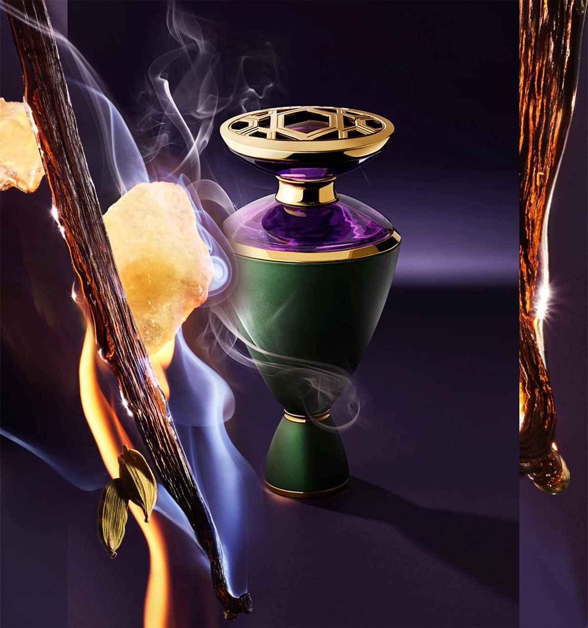 Логично, что посвященный этому всемогущему камню аромат должен был звучать особенно интенсивно и свежо. Этого добились, смешав ноты герани с мистическим дымчатым ладаном и эссенцией дерева уд.
