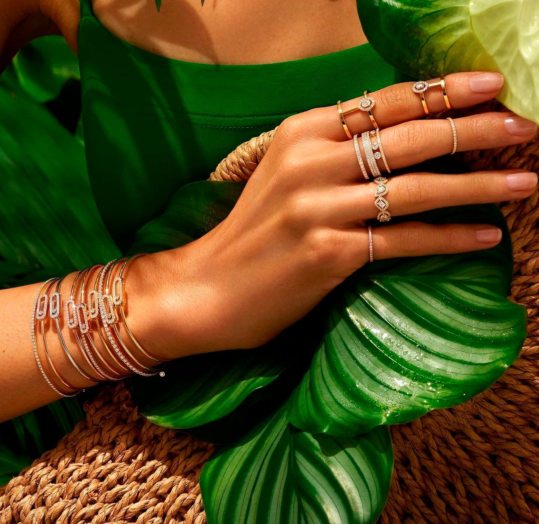 Тонкие браслеты — идеальное летнее украшение. Их можно носить в буквальном смысле не снимая, ведь они одинаково выигрышно поблескивают на солнце, с чем бы вы их ни надели — будь то джинсы и простая белая рубашка или нарядный сарафан.