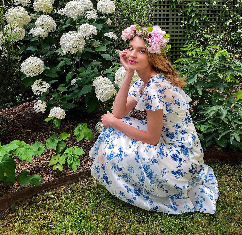 Модель и филантроп Наталья Водянова нашла в коллекции Ralph Lauren идеальное летнее платье. Нежно-васильковый цветочный узор на белом фоне сделает образ невероятно романтичным и трогательным. А ткань — легчайшая атласная органза — позволит с комфортом прогуляться под жарким летним солнцем.