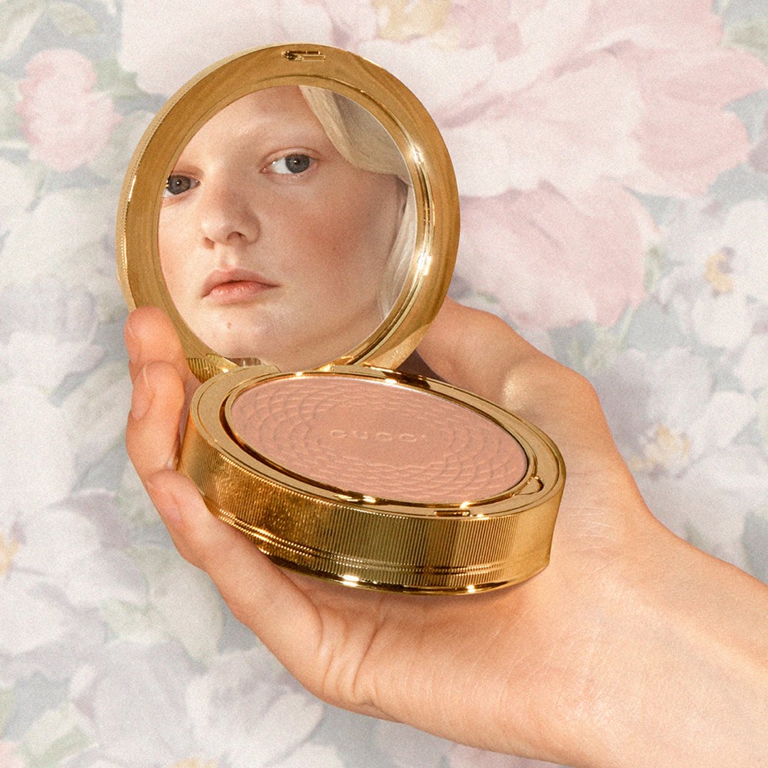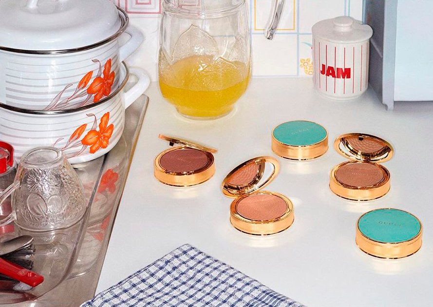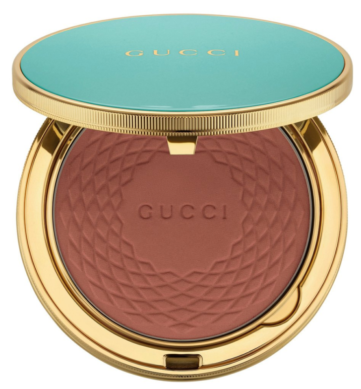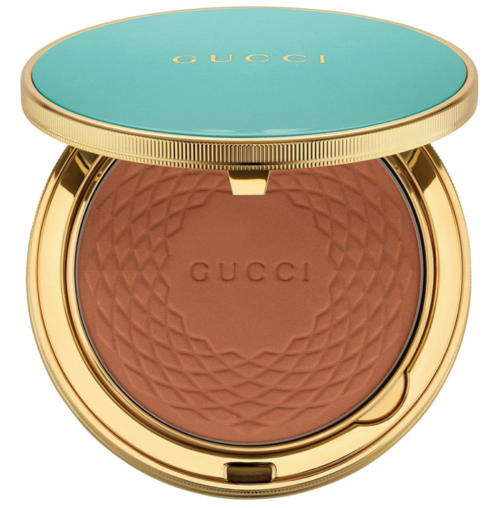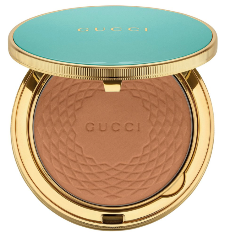 Звезда летней коллекции макияжа Gucci — Poudre De Beauté Éclat Soleil в «старинном» золотом футляре. Эта пудра-бронзер с приятным сиянием так и просится подсветить скулы, лоб, ключицы и декольте перед ужином в Cafe de Paris. Заодно средство маскирует несовершенства и визуально корректирует овал лица.