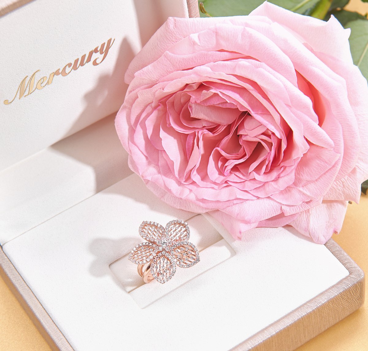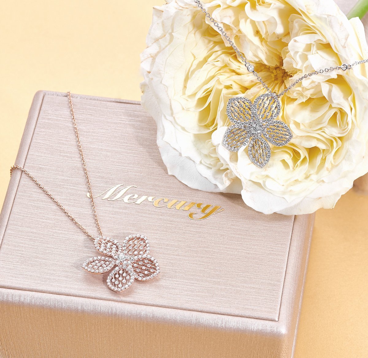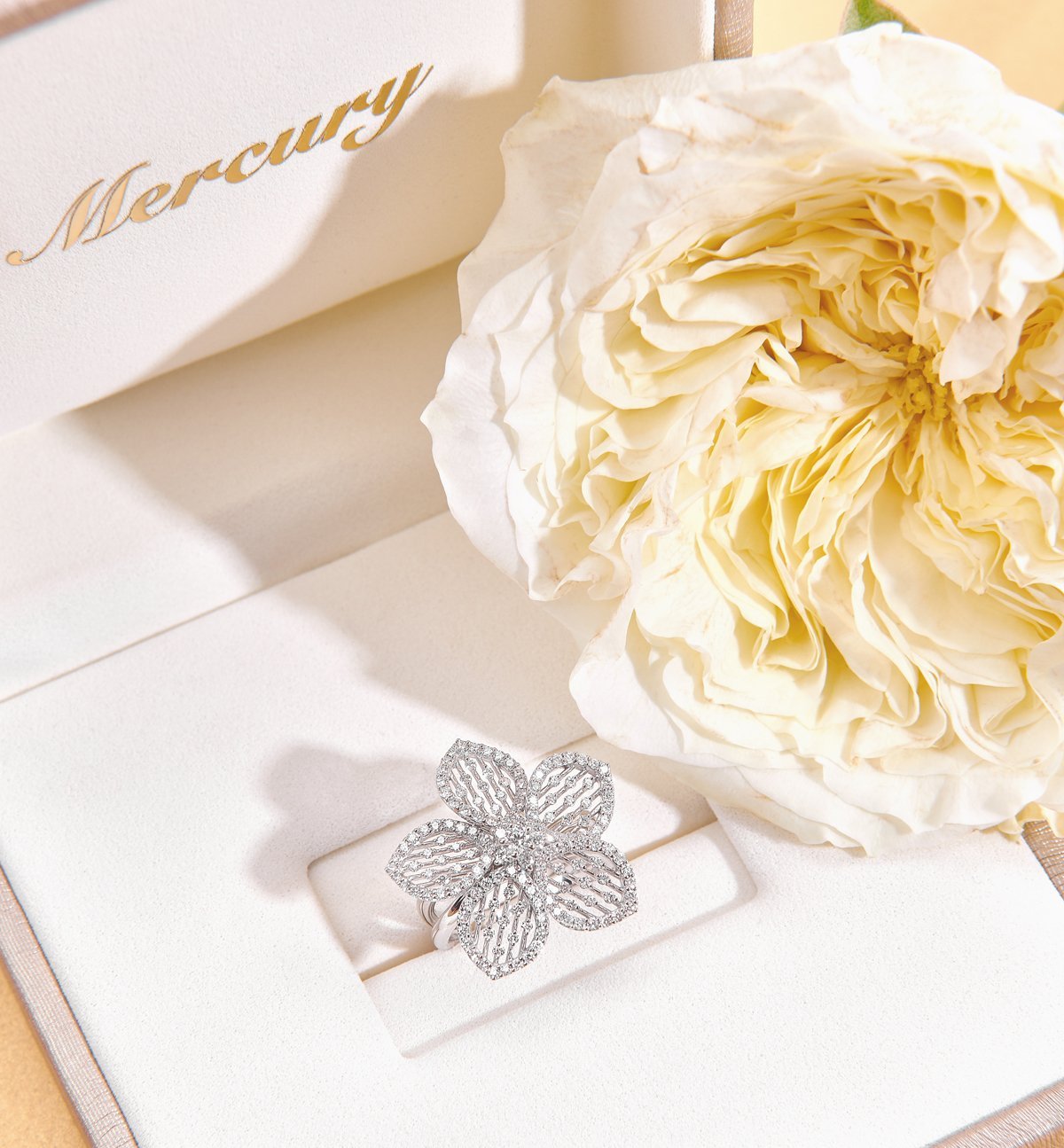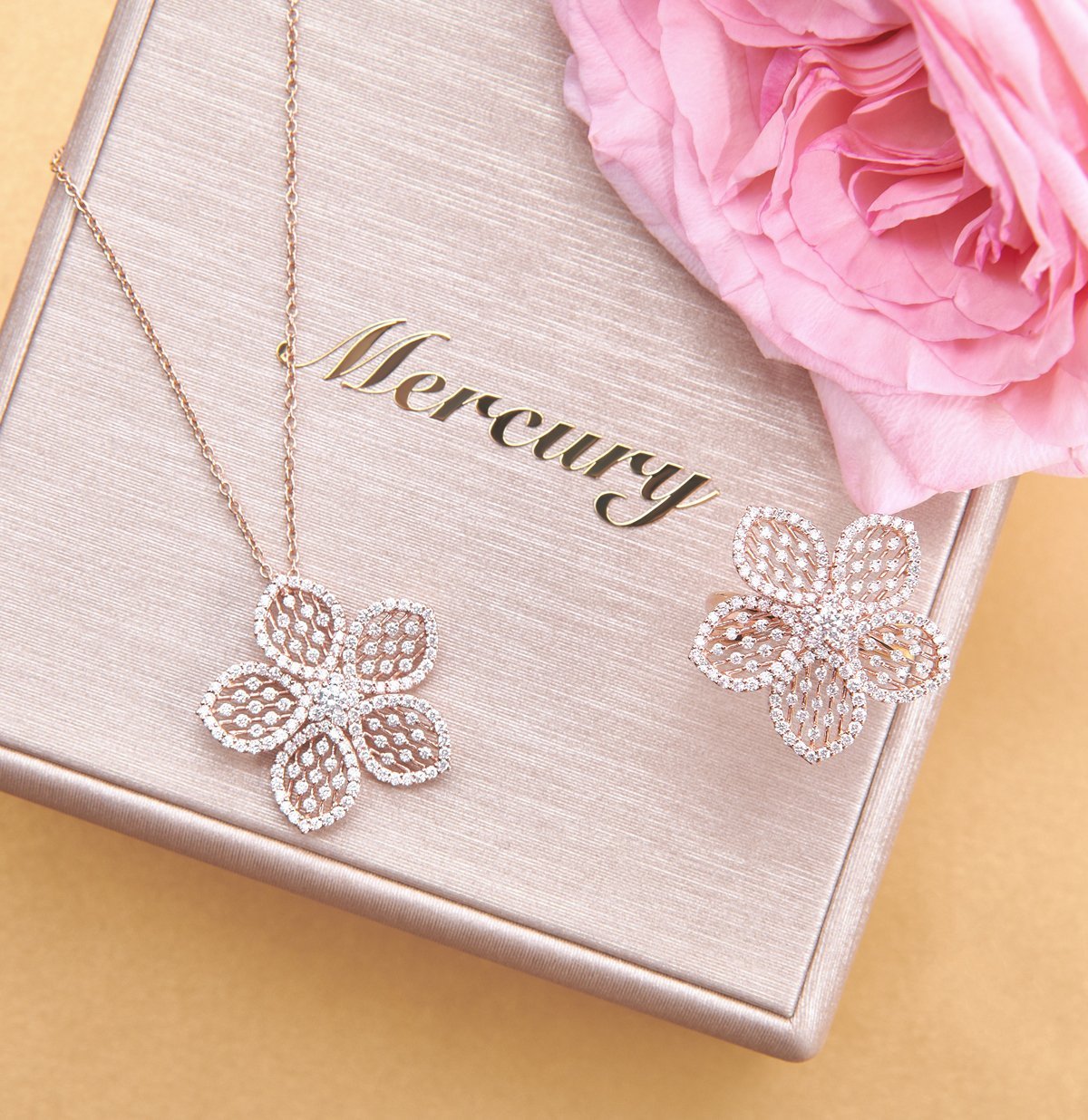 Особенно красиво мастера Mercury воплотили узор короны в украшениях в форме цветов. Лучшие бриллианты огранили и расположили так, чтобы они играли и «вибрировали» на свету. В итоге кажется, что лепестки, словно живые, слегка колышутся на ветру.