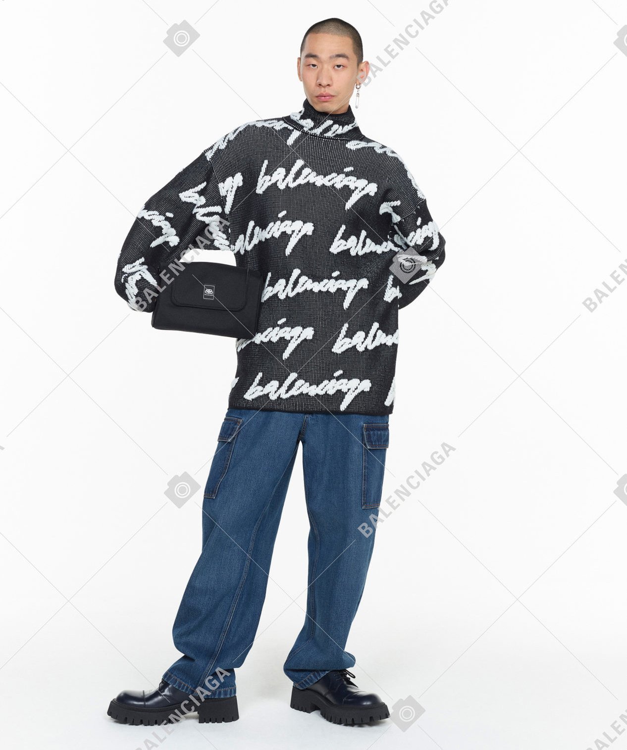 Черно-белый свитер с прописным лого станет вашим верным другом на весь сезон. Сдержанные оттенки и красивый узор будут уместны всегда и всюду.