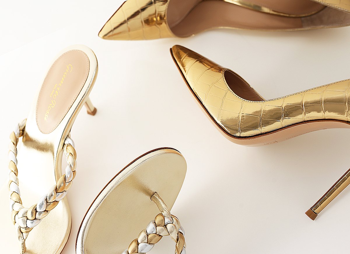 Это раньше обувь оттенка gold ассоциировалась исключительно с парадными выходами. Теперь же она обязана перекочевать в ежедневный гардероб. Ведь туфли, босоножки и ботильоны точно «в тон» золотой осени — отличный способ выглядеть нарядно даже в самый промозглый день.