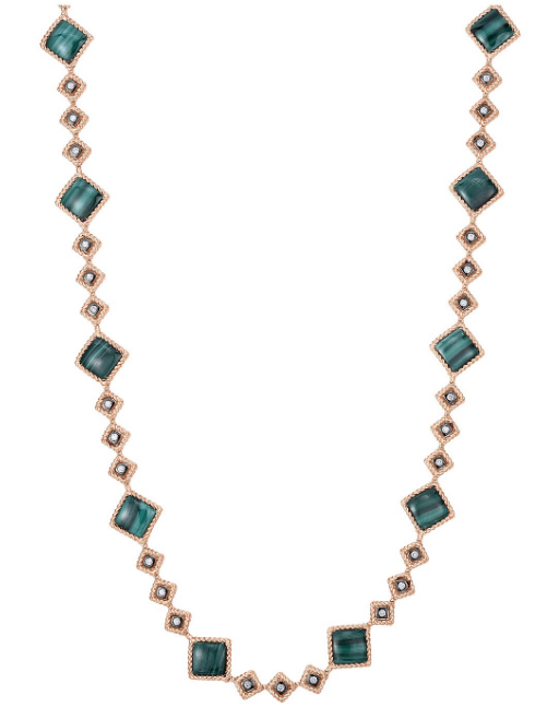 У Palazzo Ducale готический характер, но благодаря «ажурным» элементам здание производит впечатление невесомого. Могут похвастать этим и новинки Roberto Coin. Кольца с перламутром и жадеитом, серьги с бриллиантами и колье с малахитом выглядят «воздушными», несмотря на серьезный вес золота и камней.