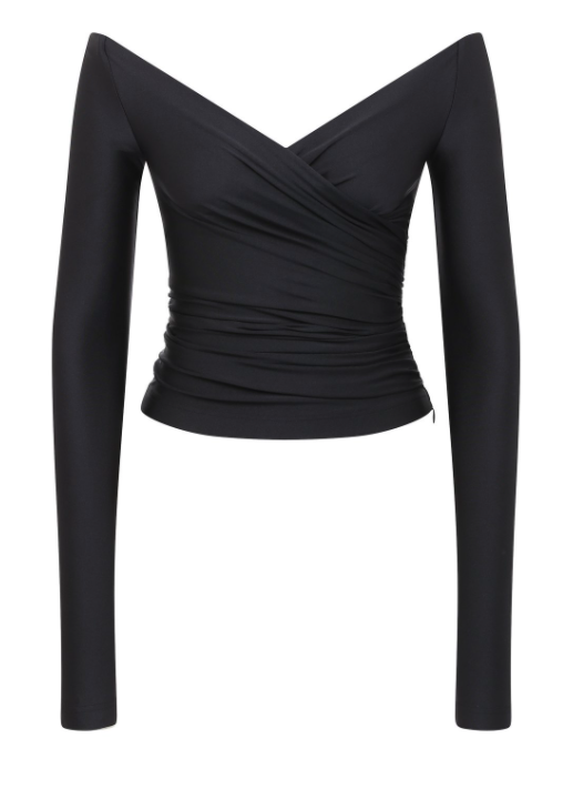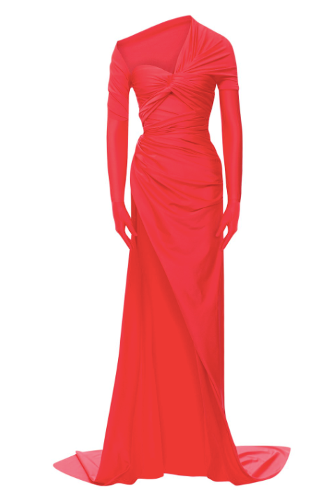 Речь о тех самых «сплошных» (обувь плавно переходила в платье, а длинные рукава — в перчатки) драпированных платьях, которые произвели фурор в финале показа Balenciaga осень-зима 2020/21. Помимо необычного дизайна модели приковывают взгляд за счет материала: это спандекс, из которого вечерние наряды до сих пор никто не шил. Так Демна Гвасалия вышел на новый уровень оригинального и смелого дизайна. И, разумеется, вновь вызвал восхищение клиенток Balenciaga.