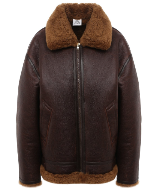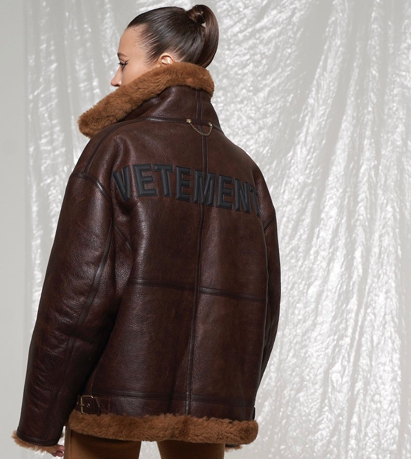 У дубленки из новой коллекции Vetements прекрасно абсолютно все. Уютный oversize — как раз для сильных морозов. Практичный, благородный и красивый цвет горького шоколада. А еще — немного юмора: цепочку-вешалку пришили так, чтобы ею все любовались.