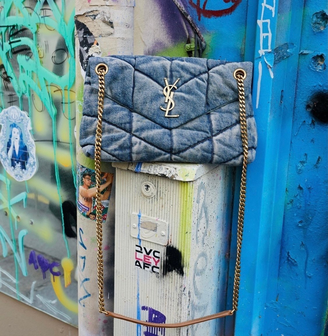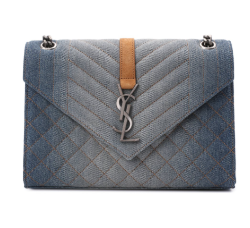 Деним в этом сезоне победоносно захватывает новые территории. И не без помощи дизайнерской команды Saint Laurent, которая выполнила из джинсовой ткани сумки Classic Envelope и Puffer LouLou.