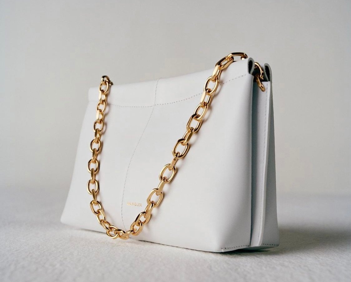 Эльза Вандлер начала свой путь в 2017 году. Дебютная коллекция Wandler была построена вокруг вариаций ее любимой формы сумок — седла. Тогда же у голландского дизайнера появилась первая знаковая модель — Hortensia, которая, как несложно догадаться, напоминала лепестки гортензии. С тех пор необычные референсы — визитная карточка Вандлер. В новой коллекции, например, представлена сумка Lin: ее мягкий силуэт вдохновлен… печеньем с предсказаниями! Но в случае с аксессуарами гадания излишни: это стопроцентный хит.