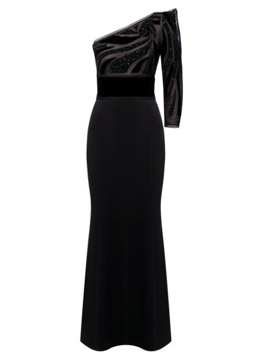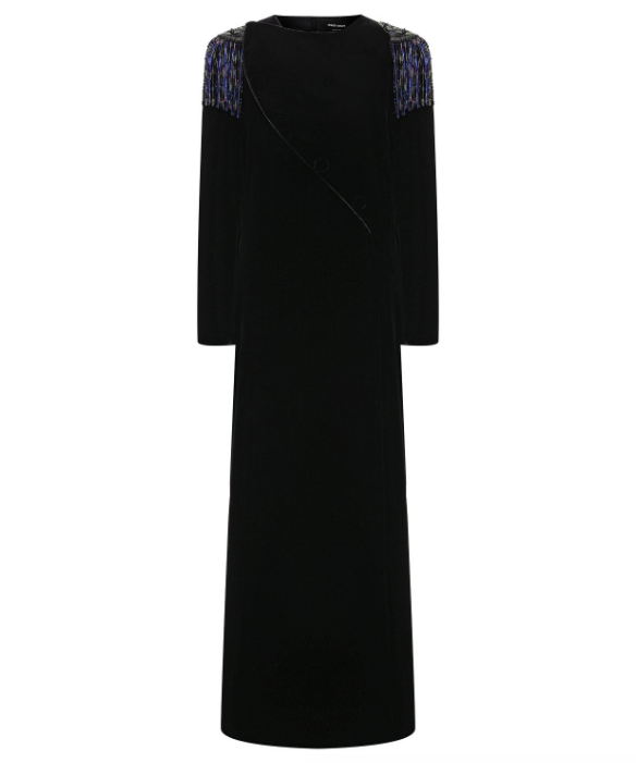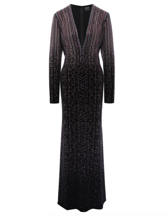 Нужный эффект обеспечил платью фирменный почерк маэстро Армани: бесконечно элегантный лаконичный крой в сочетании с благородным материалом и ярким, но изысканным акцентом в виде сияющих эполет.