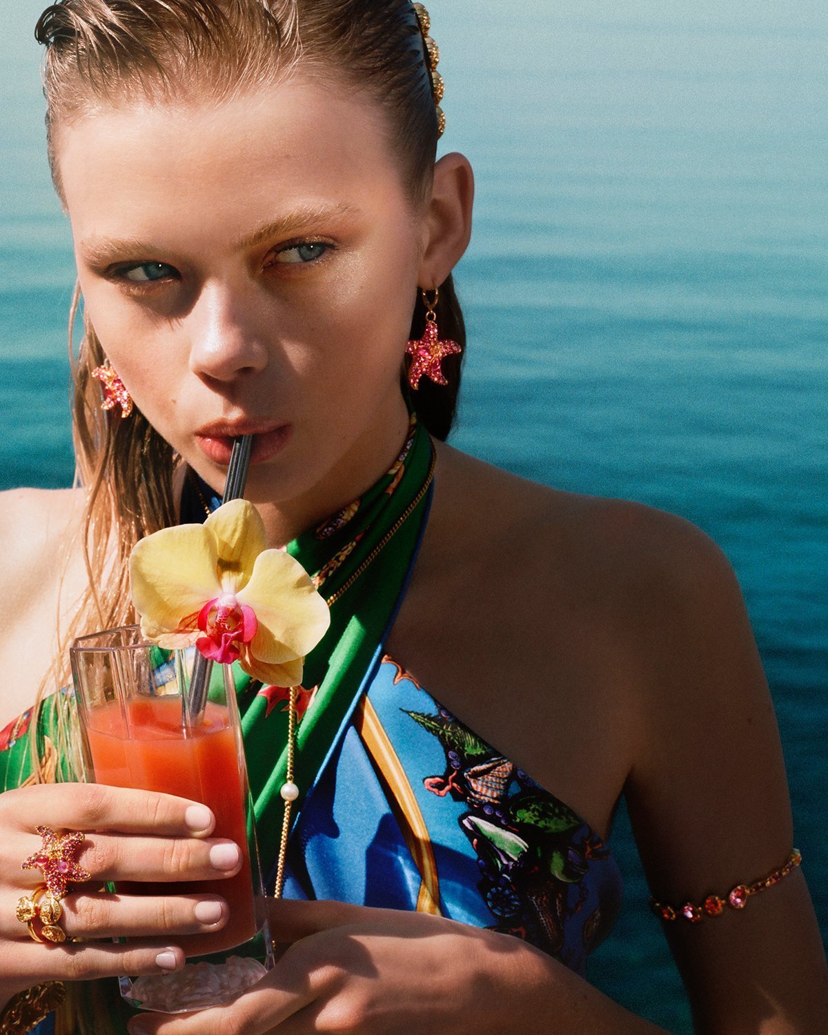 Такие узоры идеально вписываются в пейзажи курортов: рекламная кампания бренда La Vacanza, снятая в Лигурии, убедительно это подтверждает. И напоминает: поддать жару не помешает даже в +30 °С, поэтому смело надевайте с купальником серьги, браслеты и колье, выполненные в морской тематике.