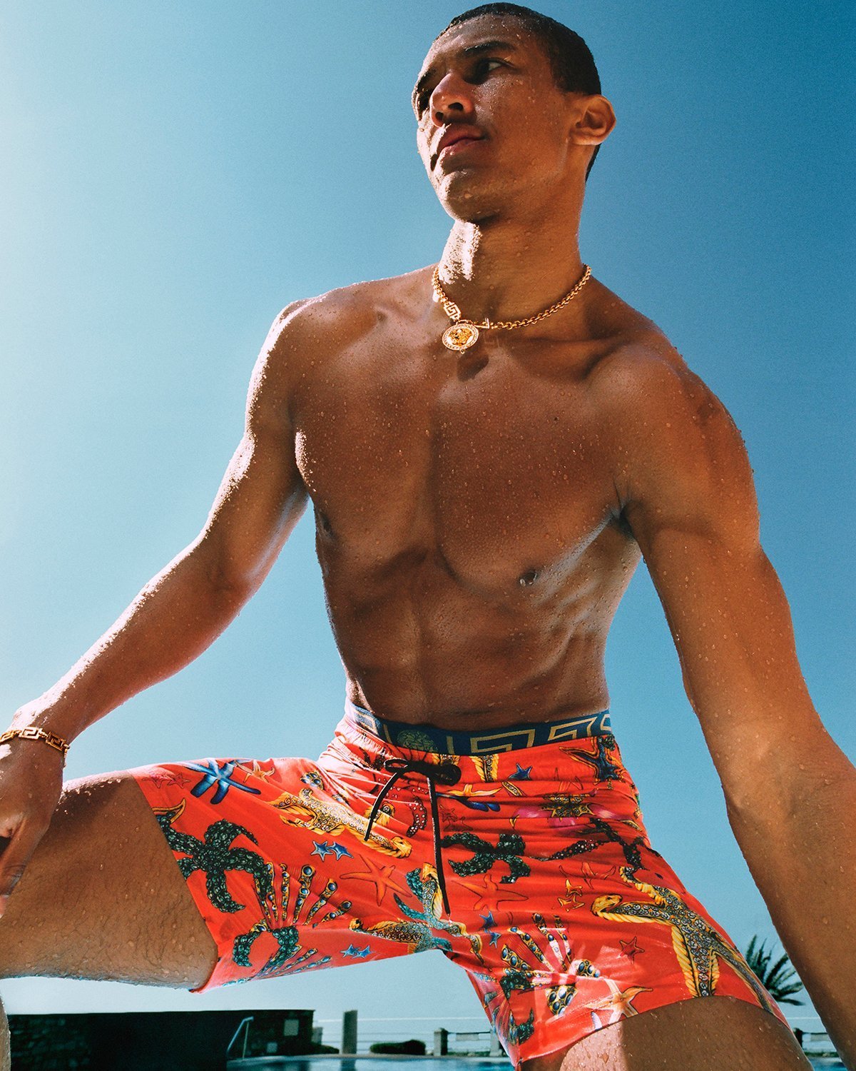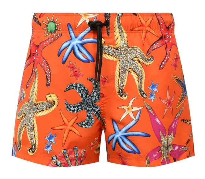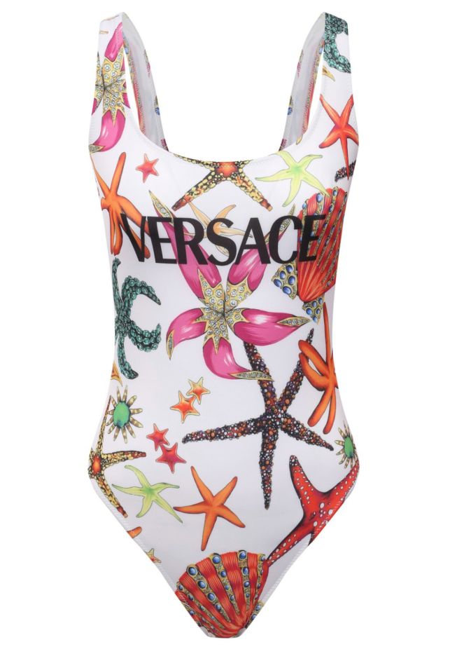 Трудно представить более отпускные принты, чем морские звезды, медузы и кораллы, которые украшают пляжную коллекцию Versace.