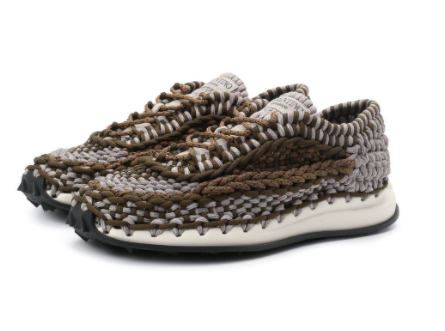 Кроссовки Crochet «связаны» из прочных меланжевых шнуров с помощью крючка и техники макраме — тем и поражают воображение. А пара One Stud получилась, наоборот, максимально лаконичной. Единственный элемент декора здесь — символ Valentino, крупный шип-пирамида, красующийся на благородной светлой коже.