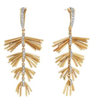 Такое решение — намек на нежность небесных созданий и одновременно эффектный ювелирный ход. Переплетения усиливают сияние драгоценных металлов и камней и создают ощущение движения (украшения будто «парят» на теле).