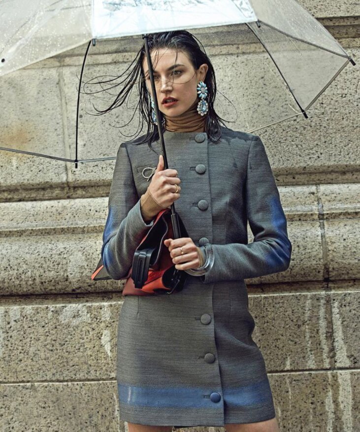 Без капризов погоды в нашей полосе не обходятся ни весна, ни лето. Но даже проливной дождь не станет проблемой, если в гардеробе есть тренч, непромокаемая ветровка, обувь на толстой подошве и, конечно, зонт. Не менее удачной покупкой станет и сумка, которая не боится влаги. Например, La Prima от Giorgio Armani, выполненная из прозрачного пластика.
