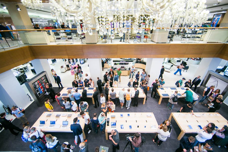 31 июля на первом этаже ЦУМа открылся Apple shop. Покупателям доступны Apple Watch Sport и Apple Watch, а также iPhone, iPad, MacBook и аксессуары Apple.