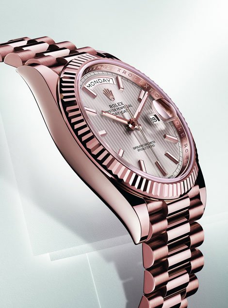 Часовая компания Rolex представила обновленную модель Oyster Perpetual Day-Date 40 с вечным календарем. 40-миллиметровый корпус новой модели выполнен из розового золота Everose и сохраняет водостойкость на глубине до 100 метров. Традиционно для коллекции Oyster сапфировое стекло оснащено линзой на отметке «3 часа», облегчающей считывание даты.