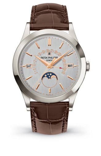 Часовая мануфактура Patek Philippe представила модель Men Grand Complications Ref. 5496 с вечным календарем и индикатором фаз Луны. Платиновый корпус диаметром 39,5 миллиметров сохраняет водостойкость на глубине до 30 метров. Автоматический калибр обеспечивает работу часовой, минутной и секундной стрелок, а также вечного календаря с ретроградным указателем даты и индикатора фаз Луны. Часы оснащены коричневым ремешком из крокодиловой кожи с раскладывающейся застежкой.