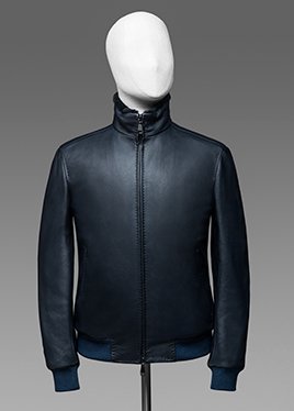 Стоит обратить внимание на кожаные куртки-бомберы. Одну модель в темно-синем цвете дизайнеры утеплили натуральным гусиным пухом, добавив отстегивающийся норковый воротник. Другая — в темно-синем и фиолетовом оттенках с воротником-стойкой из редкого меха кролика-орилага — сшита из мягкой кожи оленя с утеплителем из шерстяных и кашемировых волокон.