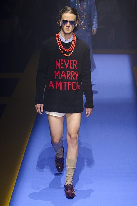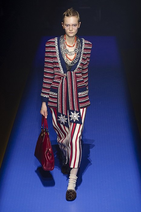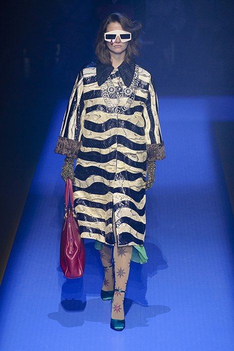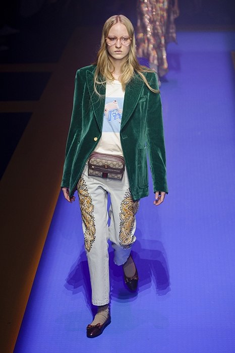 20 сентября Неделю моды в Милане открыл один из самых ожидаемых показов сезона – Gucci. Вселенная Алессандро Микеле в очередной раз завораживает и удивляет. Диснеевские Багз Банни и Белоснежка на жилетах и свитшотах соседствуют с образами героинь сериала «Династия», а царские мотивы (накидки с норковой оторочкой) чередуются с пиджаками с психоделическим принтом в стиле Боба Маки.