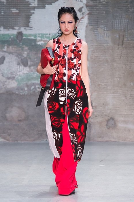 Смешение тканей и фактур, типичные для итальянского Дома, яркие цвета и цветочные принты стали основными мотивами весенней коллекции, а акценты – на прозрачные ткани и пальто из цветной норки.