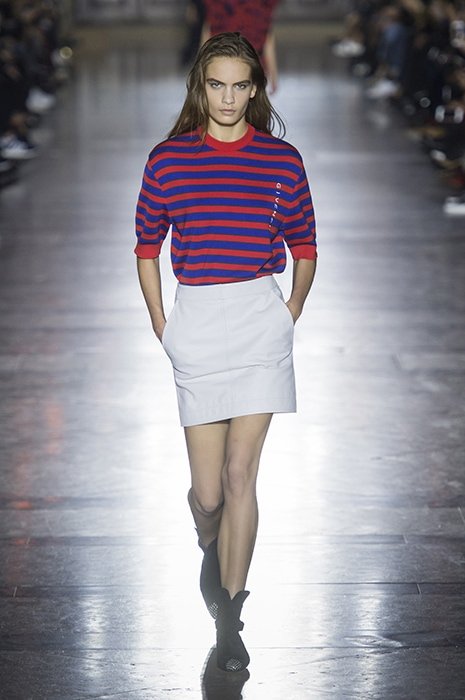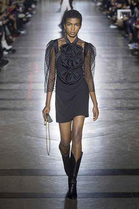 Новая глава в истории Givenchy началась с переосмысления наследия Юбера де Живанши. «В архивах я обнаружила не только знаковые силуэты Юбера де Живанши, но и красочные принты, в том числе под зебру, тигра и леопарда. Это было неожиданно и вдохновляюще. Для коллекции я выбрала два узора: клевер, который Живанши нарисовал в 1961 году, и анималистичные принты 1981 года. Цветовую палитру из черного и белого я разбавила синим, красным и мятным», – рассказала Келлер после показа. Дизайнер к строгим двубортным пальто, кожаным тренчам и брюкам добавила покрытые поцелуями мини-юбки, прозрачные блузы и воздушные платья с глубоким декольте. В первом ряду за дебютом Клэр Уэйт Келлер наблюдали Кейт Бланшетт, Руни Мара, Ферги, Изабель Аджани и Джулианна Мур.