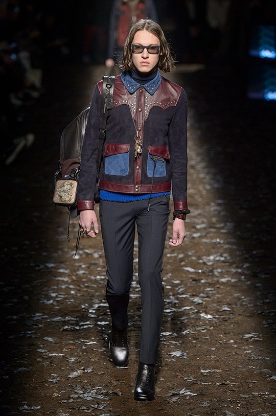 Стюарт Виверс и Раф Симонс — два иностранца, возглавившие чисто американские бренды и все коллекции строящие на культурных кодах Америки. Но подходы к одной теме у них совершенно разные. Если Симонс — очевидный концептуалист, каждый показ которого оборачивается художественным высказыванием, то Виверса совсем не тянет к глубине. Он всегда поверхностен и интересуется исключительно визуальными эффектами, и именно этой беззаботностью его версия Coach 1941 так хороша.