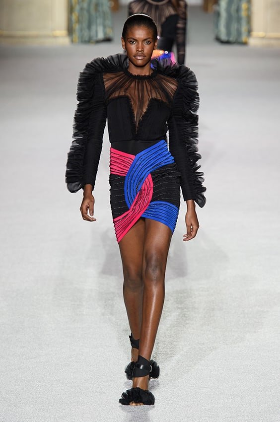 К тому, что на показах Оливье Рустена всё сияет, готова каждая гостья, приходящая на показ Balmain. Блеск каменьев и золота с подиума каждый раз слепит публику. Не стал исключением и этот раз, хотя золоту Рустен предпочел металлик, а каменьям и стразам — пайетки и лаковую кожу. Но показ всё же вышел не совсем обычным: слишком уж много было одежды и слишком мало голого тела. Вместо того чтобы обнажать ноги, спины, плечи и грудь своих красавиц-моделей, дизайнер их закрыл и укутал. Были замечены на подиуме даже стеганые широкие брюки, которые с традиционной для французского дома формулой «секс, блеск, роскошь» не связаны категорически. То же можно сказать и о длинных юбках в складку, и о закрытых костюмах, напоминающих скафандры, и о голографических блестящих плащах, и о топах с крупными голубыми пайетками, и, тем более, о пластиковых чехлах поверх платьев-футболок. Вопрос, считать ли осенний сезон началом новой эры Balmain или это временное явление?